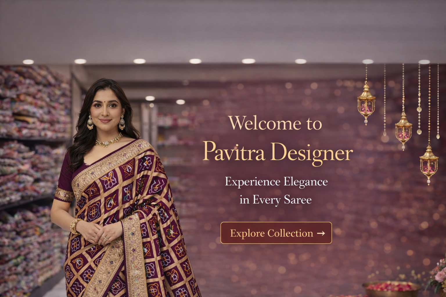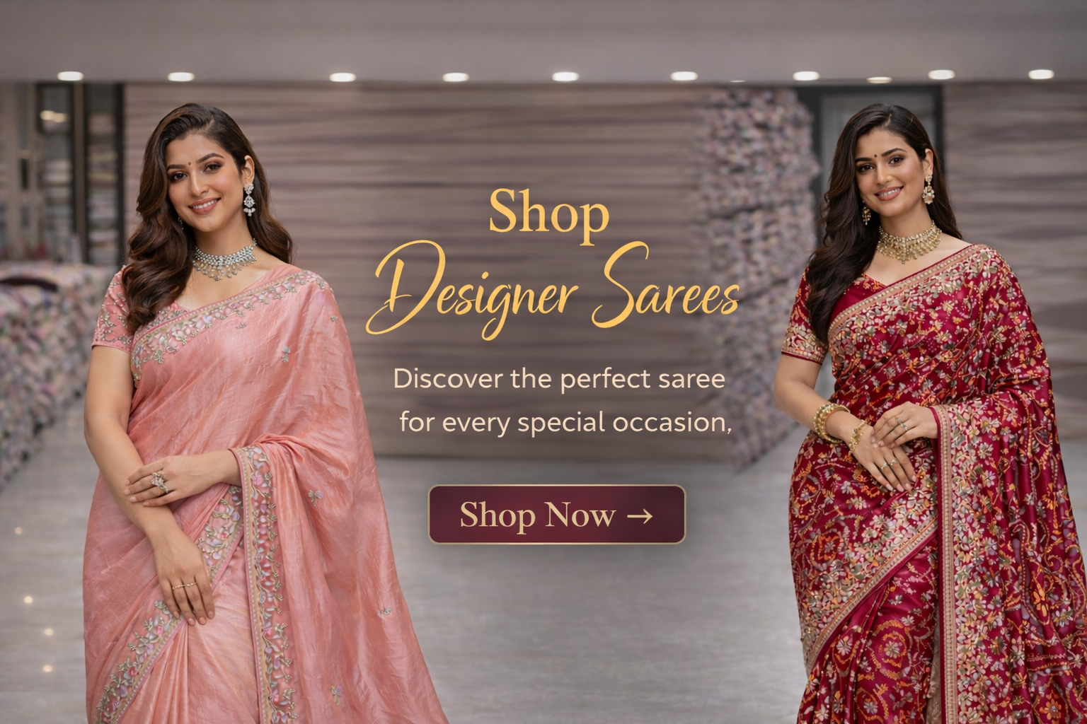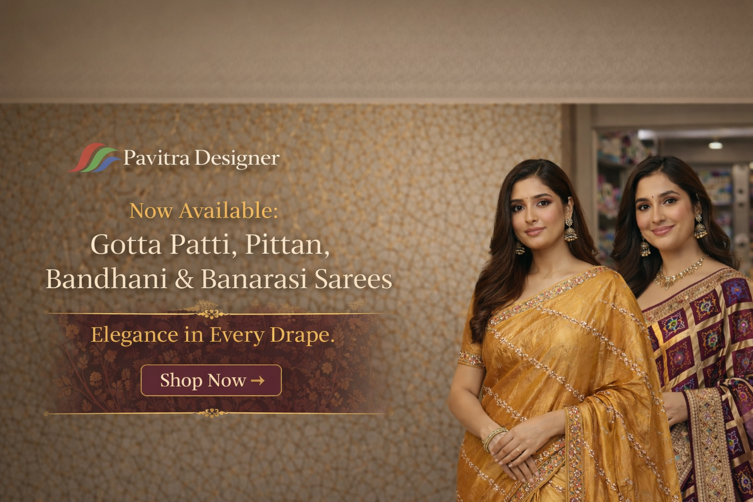 Shop NowA rich maroon saree adorned with elegant traditional motifs and a beautifully detailed elephant border. Graceful, vibrant, and perfect for weddings and festive occasions.